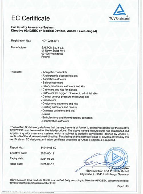 Баллон из латекса выдерживает необходимое давление, а его гладкая шелковистая поверхность облегчает прохождение катетера по сосуду. Цветовая маркировка соответствует международному стандарту, что упрощает идентификацию размеров. На теле катетера нанесены градуировочные метки с интервалом 10 см.